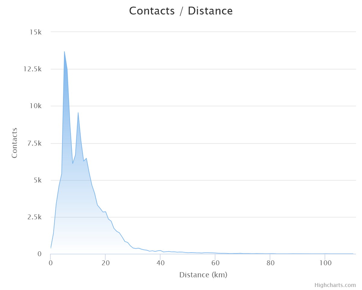 Breakdown of contacts by distance